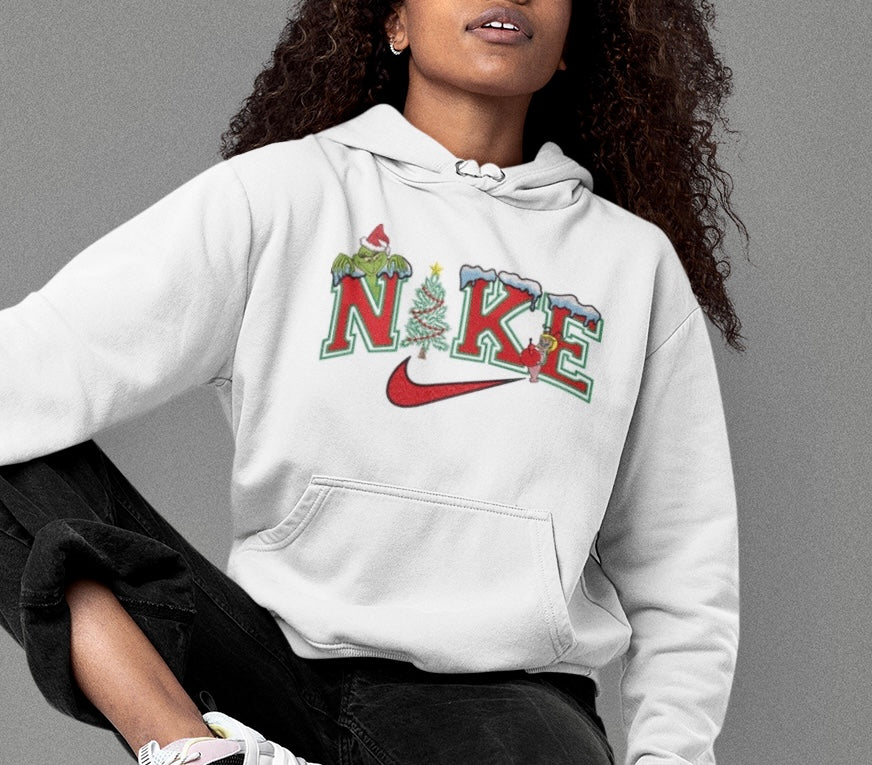 Dress up your Nike Swoosh for Christmas with this fun Grinch hoodie.