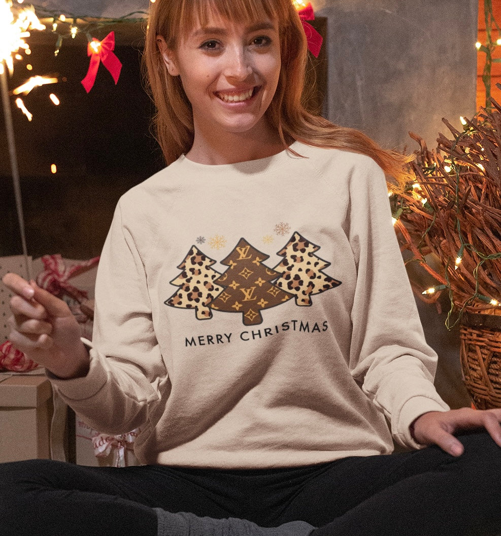 Leopard Christmas ~ crewneck sweatshirt (sand/white)