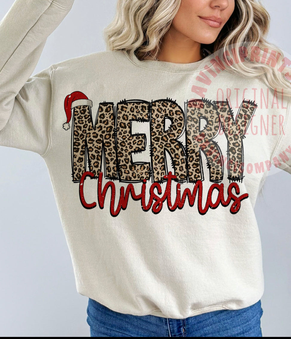 Leopard Merry Christmas ~ Sand Sweatshirt