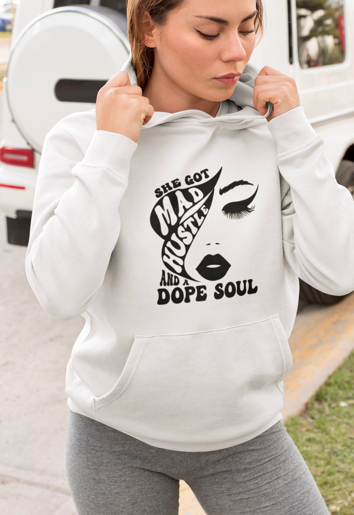When she’s got mad hustle and a dope soul’ This sweatshirt says it all. For all the boss ladies out there. Great sweatshirt for all the proud, hard working, independent women.